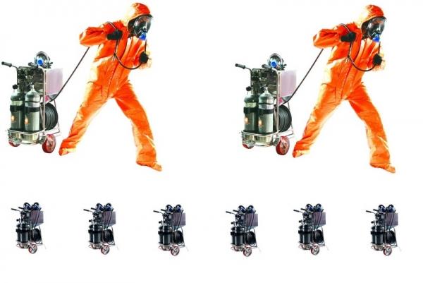 Bình khí thở công nghiệp, bình dưỡng khí, xe khí thở, bình khí thở xe đẩy, thiết bị thở, bình dưỡng khí Oxy và mặt nạ, thiết bị thở cá nhân.... di động được kết hợp bởi nguồn cấp khi cơ động trên một xe đẩy. Chiều dài cuộn dây là 40m và 2 ống thở nhánh chiều dài 10m.